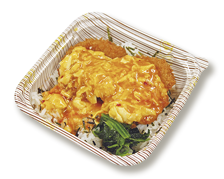 Bowl of rice fried pork cutlet with chili sauce and egg sauce